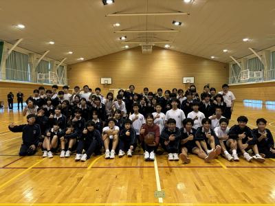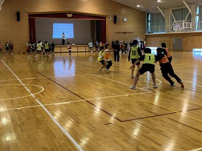 12チームに分かれて、シュート対決や3X3を楽しみました。競技の前には「努力・継続することで夢をかなえた体験談」も話していただきました。良い習慣を身につけることや夢中になれることを見つけることの大切さを考えるきっかけとなりました。