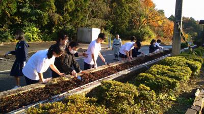 生徒達は、来年の春、新入生を気持ちよく迎えられるよう、気持ちを込めて植えていました。