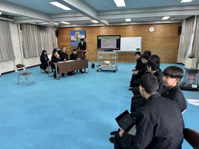 1年生は、フィールドワークを通して、住み続けられる街づくりについて発表しました。