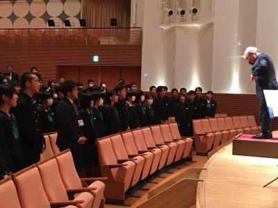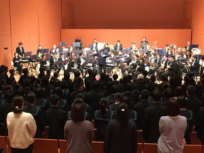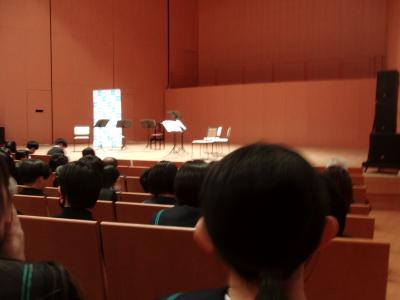 文化庁が主催する標記の事業で、東京佼成ウインドオーケストラの公演を鑑賞しました。50名近くの団員の方がラポルトすずに来られて、緑中生徒のために演奏をしていただきました。日本最高峰の吹奏楽の演奏を間近に座って鑑賞し、生徒たちは「ほんもの」が持つ凄みを、耳で、目で、体・心で感じ、贅沢な時間を過ごすことができました。