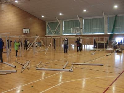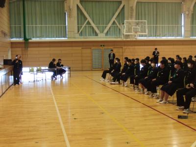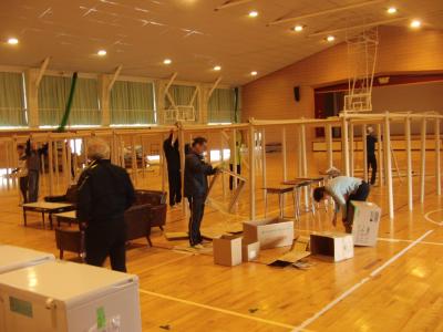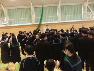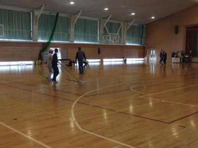 避難所設営から10か月以上、体育館に設営されていた避難所が撤収されました。避難所運営のお世話を頂いた地元の方や、多数のボランティアの方々のお力を借りて、午前中にはほぼ片付きました。生徒たちも、朝の会で避難所撤収のお知らせに、一安心した様子でした。まだ、機材や物資が一部残っていますが、今後施設面の安全を確認して、体育の授業や部活動に全面開放となります。