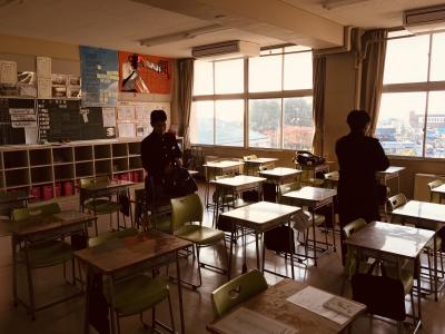 7時55分の教室です。ここ数日は、朝に暖房を入れなくても過ごしやすい日和となっています。まだ生徒たちはまばらな状況ですが、8時過ぎに一気ににぎやかになります。
