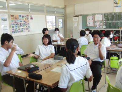 10月9日、岐阜県岐南町立岐南中学校の生徒8名と教師4名が緑丘中へ交流に来られました。