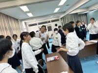 当初は緊張もあり、硬い雰囲気でしたが、徐々に打ち解け、お互いの学校紹介や質疑応答など楽しく交流することができました。