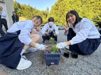 交流会の最後には、お互いの友好を形にするためにパンジーの花苗を協力して植えました。また、学校で大切に育てたいと思います。