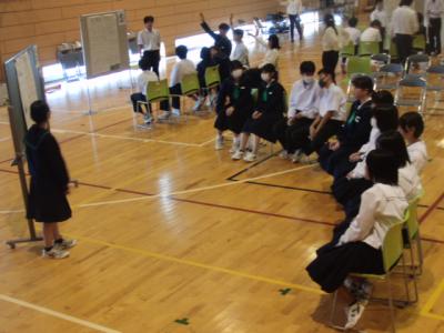 本校恒例の学習集会では、緑丘中学校の授業スタイルについて生徒と共有しました。