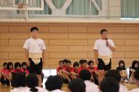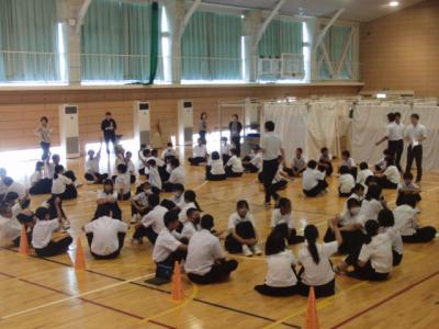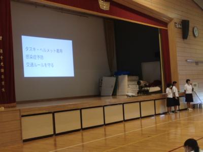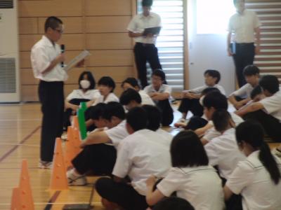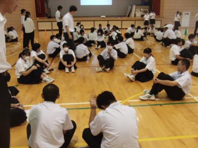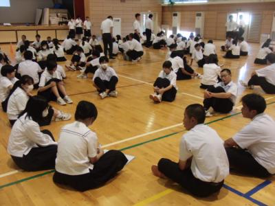 明日からの夏休みを前に、生徒会が主宰する生徒集会で、安全な生活をするためのアイディア(心構え)について話し合いました。テーマごとに学年縦割りグループでの話し合いです。多くのグループでは3年生が主導していましたが、1・2年生も積極的に意見を出していました。病気やけが防止はもちろん命の大切さに言及する生徒もいました。最後に全体の意見を生徒会執行部が3つに絞って全員で共有しました。安全で充実した夏休みになりますように。