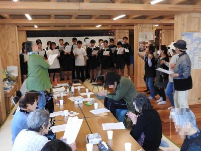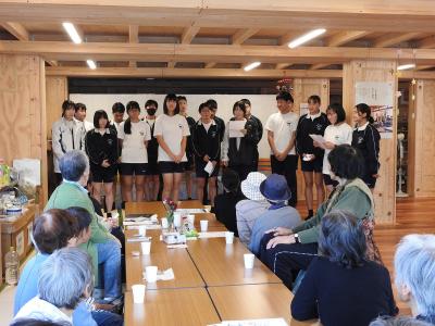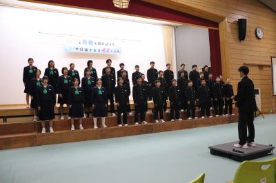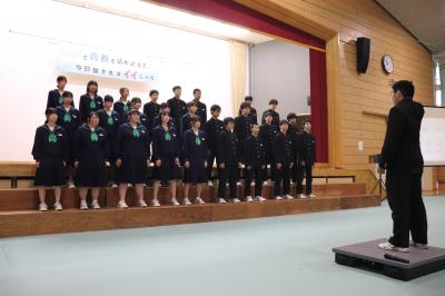 3年生は総合的な学習の時間や生徒会活動などで「地域とつながる」をテーマに活動をしています。本日午後、3年生が正院町第一団地と蛸島町第一団地を訪問し、住民の方々とのふれあいの時間を持ちました。ミニゲームでリラックスムードになった後、文化祭で歌う合唱曲を披露しました。最後に「ふるさと」「上を向いて歩こう」を一緒に歌いました。住民の皆様には歓迎していただき誠にありがとうございました。11月1日(土)、本校体育館で文化祭を開催いたしますので、ぜひ足をお運びください。