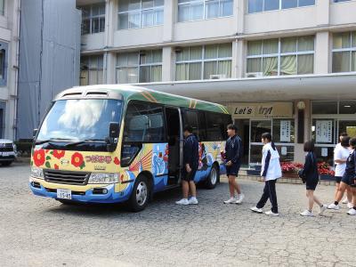 ふれあいタイムの後は、除草作業をして学校に帰ってきました。FIDER様から寄贈のマイクロバス(つばき号)は、生徒の校外学習の送迎に大変役立っています。あらためて感謝申し上げます。