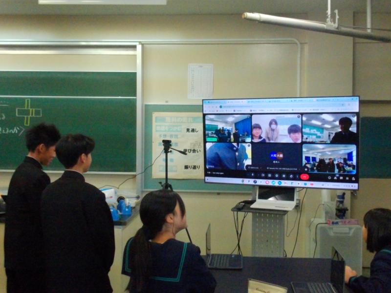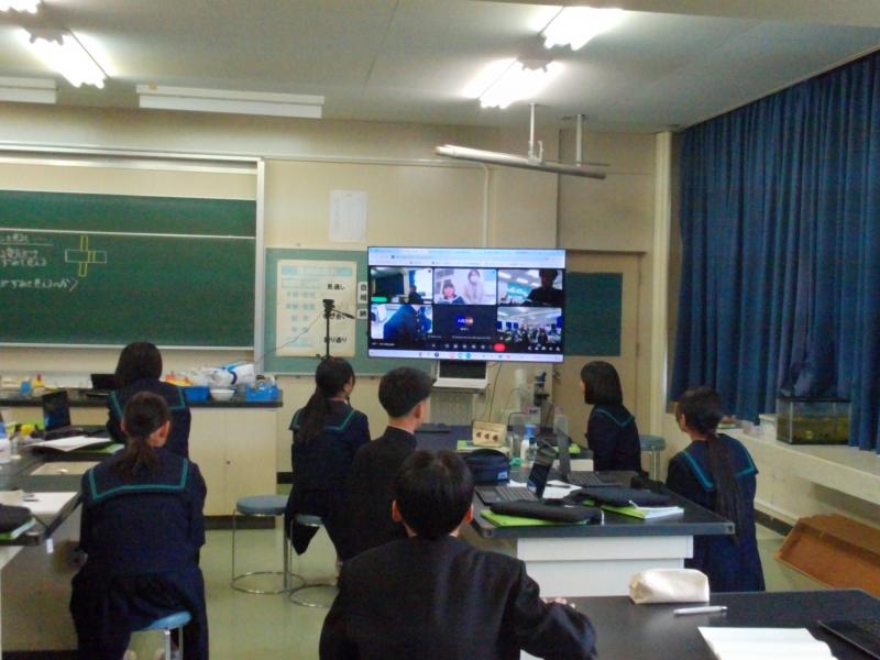 10月23日(木)の1限目の理科の時間に大谷小中学校の1年生と1年2組の生徒がリモートで交流しました。次の合同授業へ向けて、班の確認やあいさつをしました。次の合同授業でも一緒に実験したり、考えたりしながら課題を解決していきましょう。よろしくお願いします。