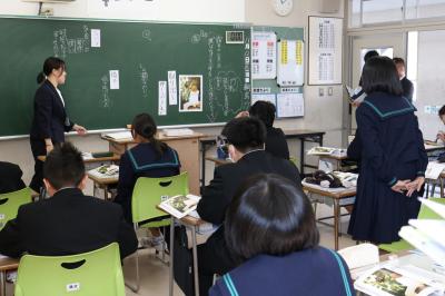 本日、指導主事の先生方をお迎えして、標記の研修会を実施しました。1年生国語の授業を中心に、各学年・教科の授業を見ていただきました。生徒たちは前向きに授業に参加しているので、授業の成果が学習の定着につながるように指導力を磨いていくようアドバイスを頂きました。本日指導いただいたことを、明日からの授業に生かしてまいります。