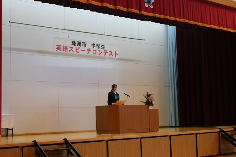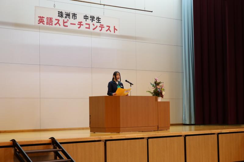 20日に宝立小中学校で中学生英語スピーチコンテストが行われました。