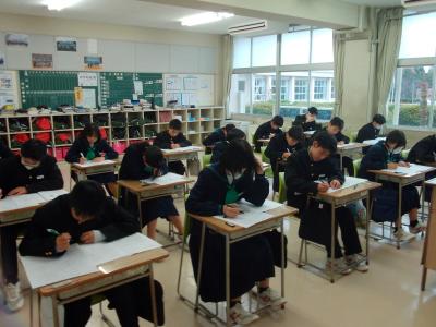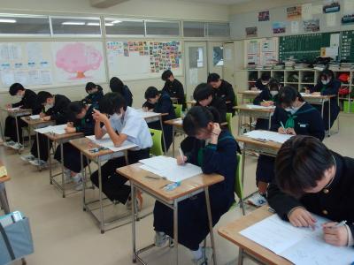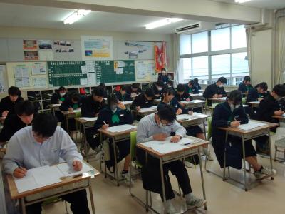 本日から3日間の日程で期末テストが始まりました。回を重ねるごとに、各学年とも最後まで姿勢を崩すことなく集中して取り組むことが出来るようになっています。今後、授業改善を進めて生徒たちの努力を成果に結びつけるよう努めていきます。