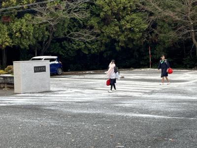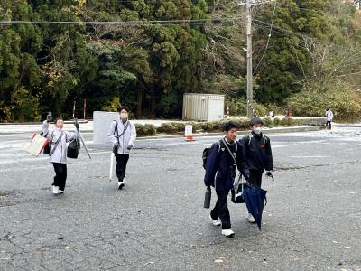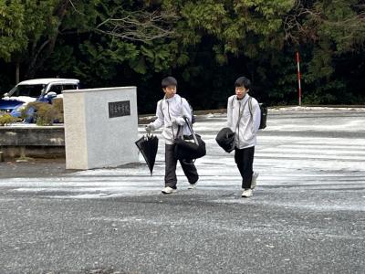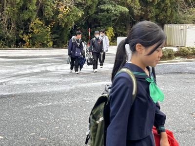 波浪警報や降雪予報がでた今日の朝、生徒たちは寒さに負けず登校してきました。地震で壊れていた校門も修復が完了し生徒を迎えます。本日は2学期末テストの二日目です。