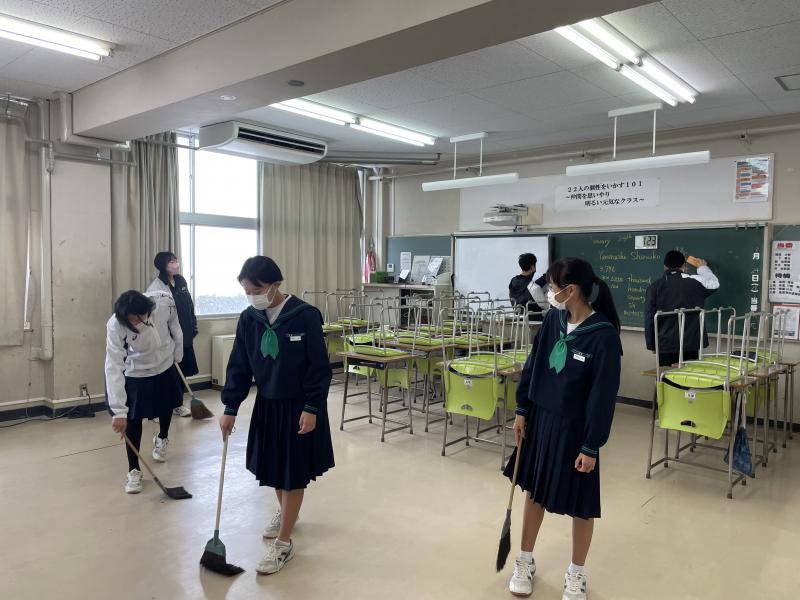 そんな中,緑丘中学校では学び合い学習や教室を掃除しながら時間を意識して行動する