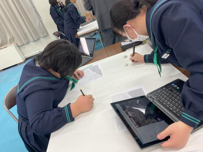 2年生防災学習Aコースではオリジナルのマップ作りを行っています。
