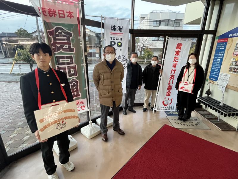 12月1日(金)に珠洲市社会福祉協議会の皆様と本校の生徒会執行部で歳末たすけあい街頭募金を行いました。