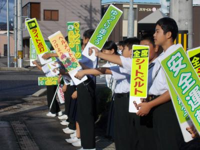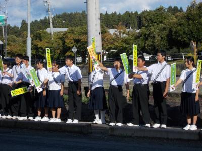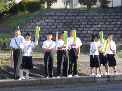 10月2日追記 本日朝、1年生が学校下で好通安全をよびかける活動に取り組みました。