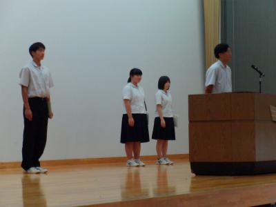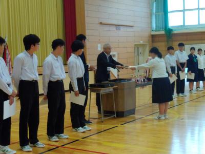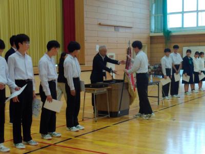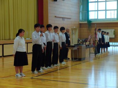 先週末に行われた全能登大会や県大会などの納賞と表彰伝達が行われました。納賞後、選手たちは、反省と力強い次への抱負を述べました。