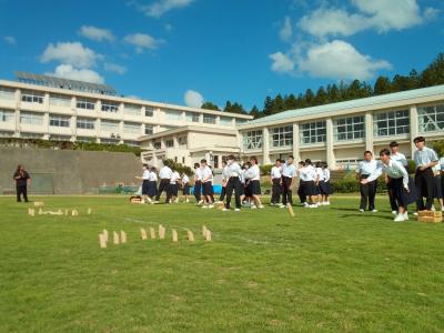 給食を一緒に食べ終えた後には参加希望者でモルックを行い、生徒たちの笑顔で楽しむ様子が見られました。