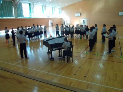 5限目は「居場所」をパート練習の後に岐南中生と3年生の全員合唱をしました。岐南中の生徒たちも事前に合唱練習を行っており、最初から美しいハーモニーが体育館に響きました。