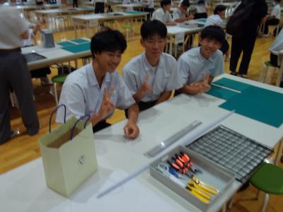 8月4日(月)、2年生3名がサイエンスチャレンジに参加しました。既定の材料を使って、与えられた球をいかに長く転がすことができるかアイディアを出し合い、制作につなげました。