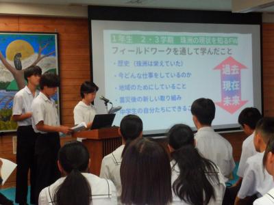 8月8日8金)、3年生2名が「珠洲市親子議会」に参加しました。総合的な学習の時間で検討したことや、被災経験から質疑要望を行いました。(撮影禁止のため、写真はありません)