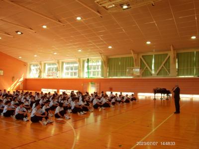 6限目は、学校生活集会です。「みどりタイム」の新メニュー「1分間スピーチ」に初挑戦しました。伝える側の話す力はもちろん、聴く側の相づちや積極的な質問など、コミュニケーション力が身についてきている様子を感じることができました。