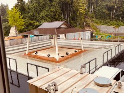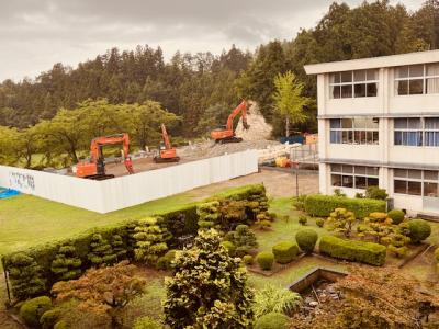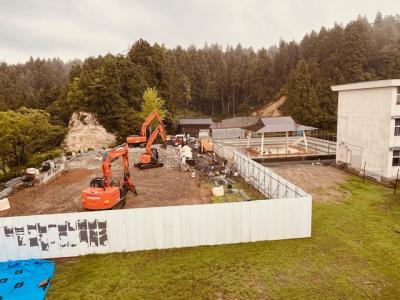 令和4年6月の地震の影響で使えなくなっていた第二体育館(市営体育館)解体工事中の様子です。OB,OGの保護者の皆様には思い出のある方も多いのではないでしょうか。隣の相撲場の修復工事は完了しています。この後、厨房の修復に取り掛かる予定です。