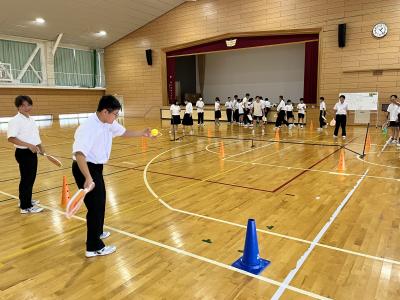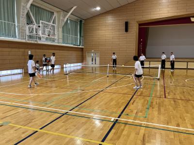体育館では、生徒会体育委員会主催のスポーツイベント「ピックルボール大会」が開催されています。1日4試合ずつ、2週間をかけてトーナメントを戦っています。体育委員会の生徒が主体的に運営しています。