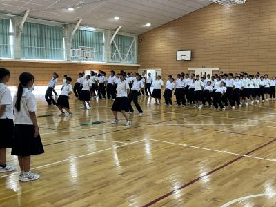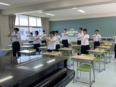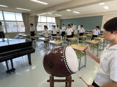 また、本日は給食試食会で多目的教室が使えないため、応援団の生徒たちは音楽室で練習をしていました。