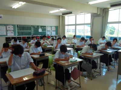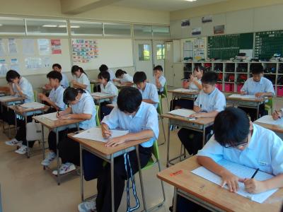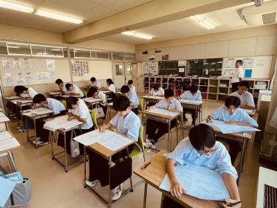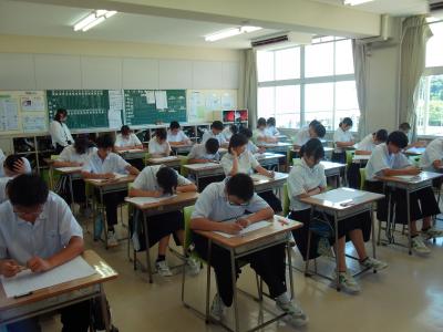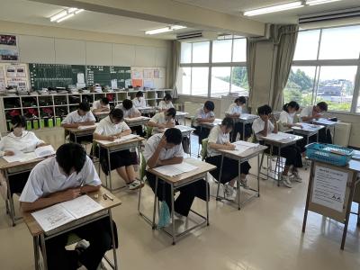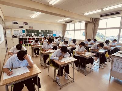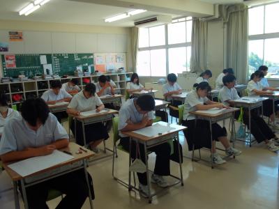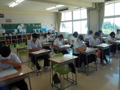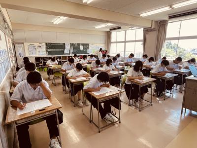 1学期締めくくりのテストが今日から始まりました。この土日に大会を終えたばかりの生徒も多く、体調面も心配されましたが、どのクラスも50分間最後まであきらめずに問題に向き合う姿が見られました。
