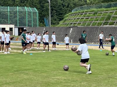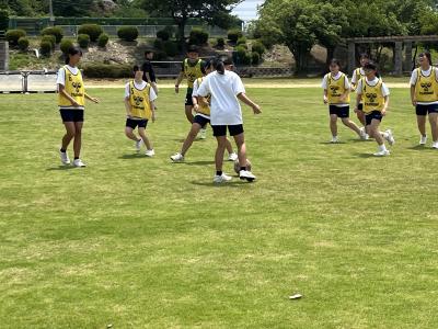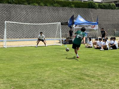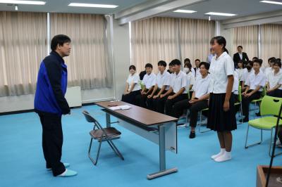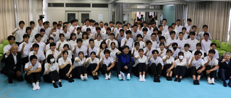 ガンバ大阪の現役3選手とコーチが来校され、交流会を実施しました。休憩もしっかりとりながら、最後は選手対生徒のゲームで盛り上がりました。3年生とのゲームでは集団応援の声も響き、選手が「完全アウェー」と笑顔でこぼす場面も。給食の時間には選手の皆さんと一緒に教室でお昼を頂き、ご自身のキャリアを通していろいろな質問に答えてえていただきました。余ったおかずをかけて選手とじゃんけんをするクラスも。2年生は、「数学(的な思考)と英語は大事だよ」というアドバイスが心に残ったようです。