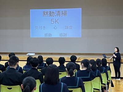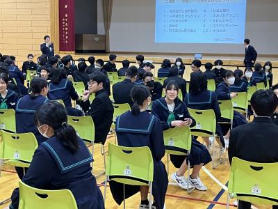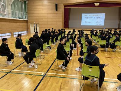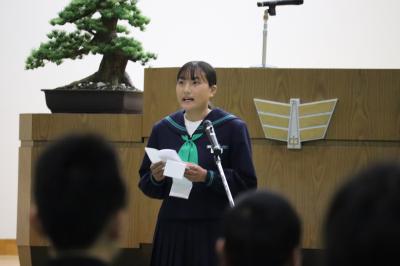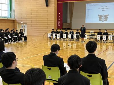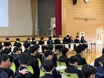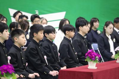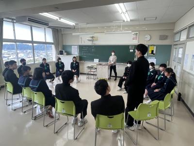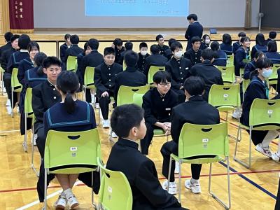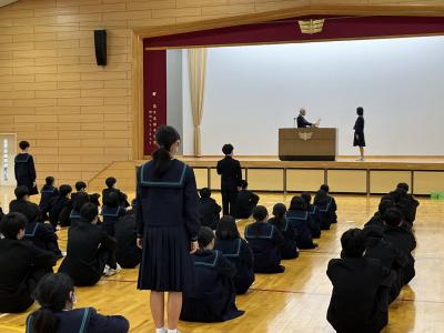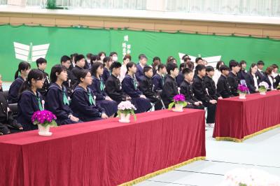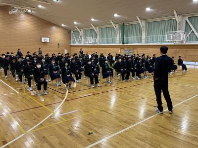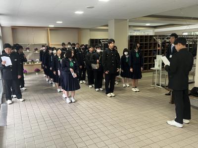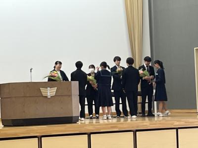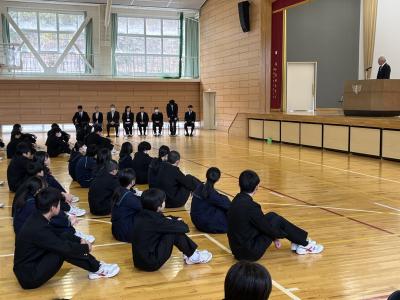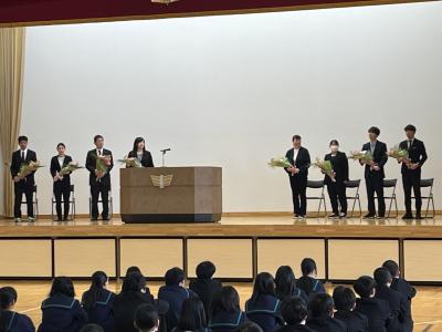 この度、8名の職員が異動することとなりました。離任する職員からは、生徒たちへそれぞれの言葉でエールが贈られ、生徒たちはうなずきながら聞いていました。新しい職場でのご活躍をお祈りします。また、集まってくれた卒業生の皆さん、1・2年生もありがとうございました。