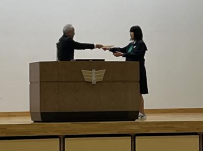 本日をもって、令和6年度の課程を修了しました。修了式では、学校長が年度初めに投げかけた3つの約束「命を大切にする」「生きる力を養う」「粘り強くチャレンジする」で、この1年を振り返りました。生徒たちは、進級に向けて気持ちを新たにしたようです。式に先立ち、英語検定の伝達表彰をしました。