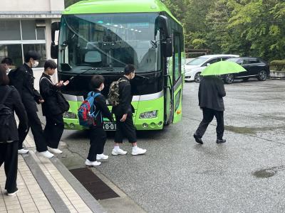 3年生が修学旅行に出発しました。バスに乗り込む際には雨も小康状態となり、笑顔で乗車しました。楽しい思い出づくりはもちろんのこと、いつもと違う活動場所での新たな発見や感動に期待したいです。