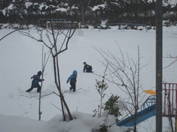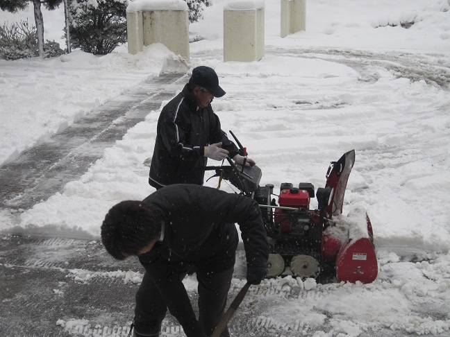 今朝もバスの運転手さん2人が玄関前の除雪をして下さいました。
