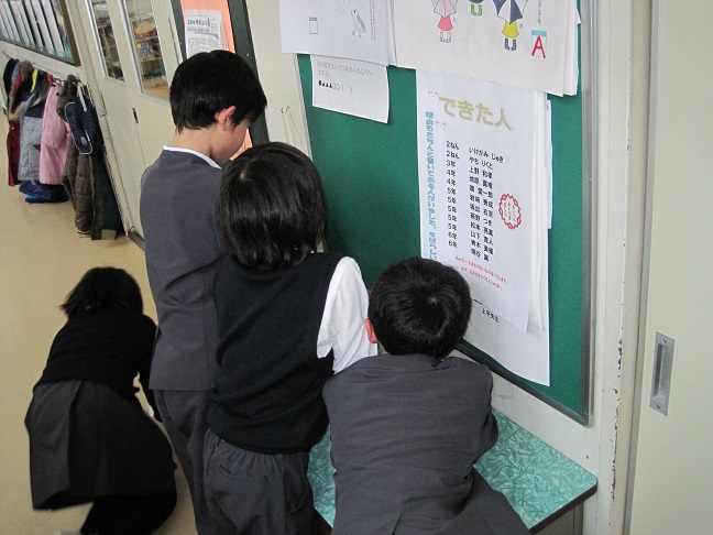 初日から算数の難問コーナーで、児童が入れ替わり立ち替わり難問に挑戦しています。