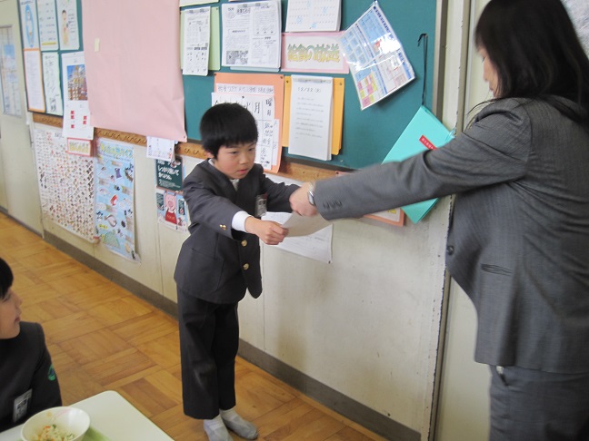 第32回県児童硬筆書写作品コンクールで、特選に4年生の坂出舶君、入選に2年生の正武田大悟君が受賞したので校内表彰しました。