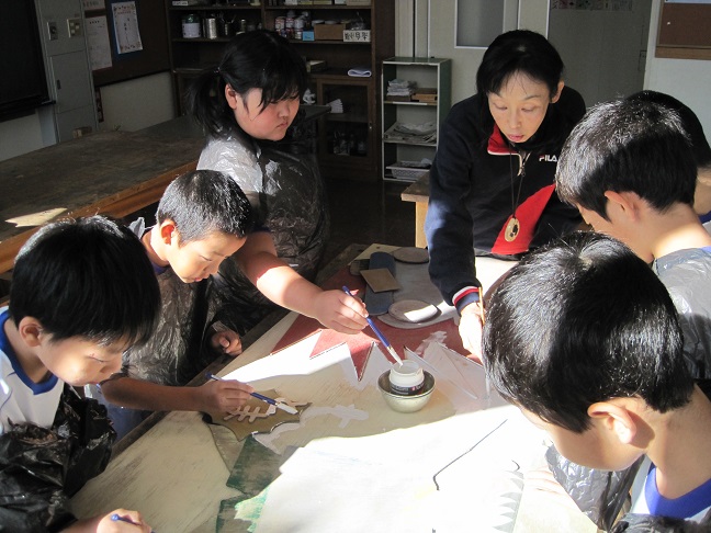 図工の時間に、3・4年生が通学路の看板を修復していました。ムラなく丁寧に、黙々と作業を頑張っていました。完成までもう少し!!