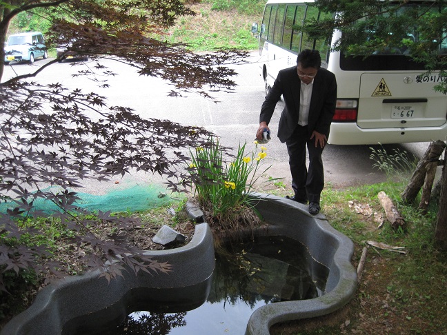 鯉の泳いでいる池が清掃されて、とても綺麗になりました。餌をたくさん食べて元気いっぱいに泳いでね