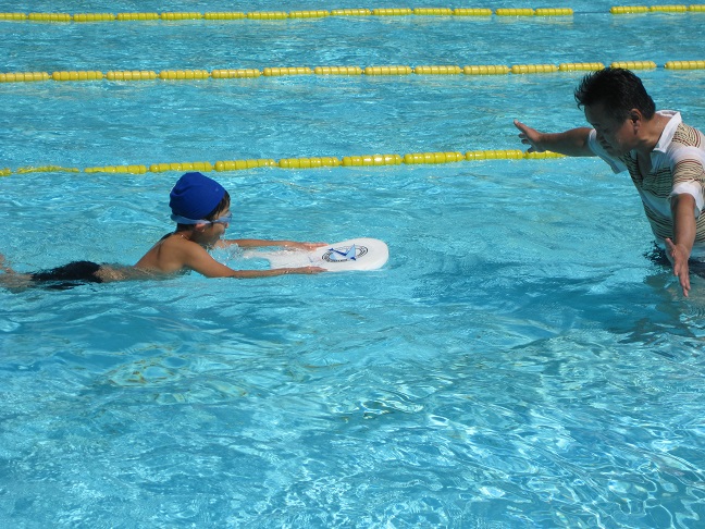 ビート板を使って息継ぎの練習をしました。耳を澄ますと三井の街中に子どもたちの楽しそうな声が響いているのではないでしょうか