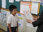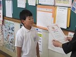 2015年9月10日 13時02分校内俳句作品の表彰です。1・2年生の4人が表彰されました。表彰式の時は4人とも緊張していましたが、表彰後はとても嬉しそうでした。