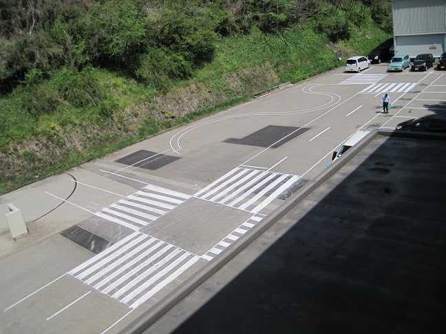 7日の午後に行われる交通安全教室のコースが完成しました。当日はこのコースを使った自転車乗りや横断歩道の渡り方など警察の方からお話を聞く予定です。