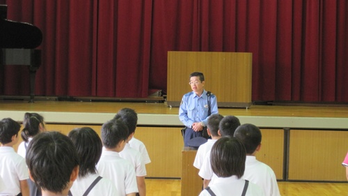 終業式の前には,三井の駐在さんをお呼びして,防犯教室が開かれました。