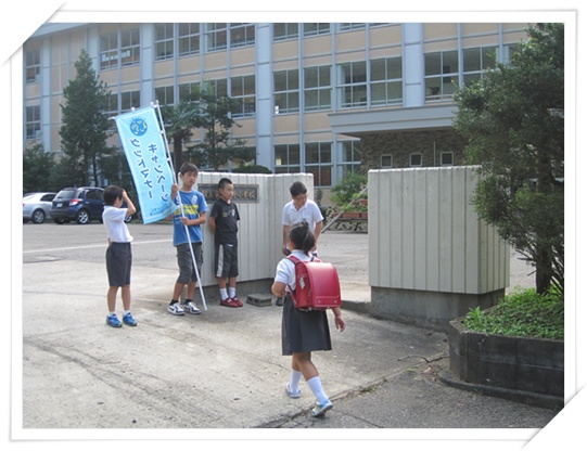 児童たちは,キャンペーンに乗じた,あいさつ運動をがんばっていましたよ!