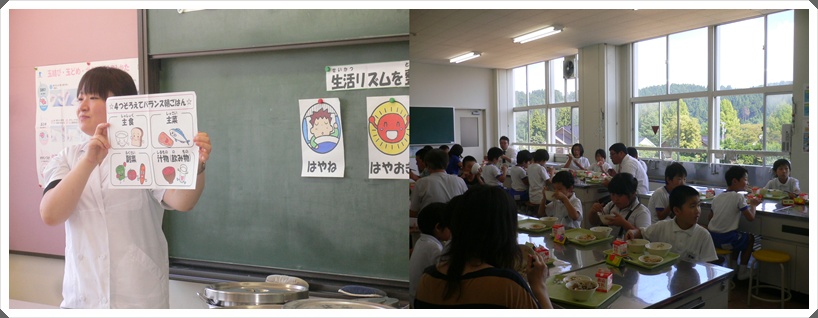 給食を食べながら,生活のリズムを整えるポイントをイラストを交えて教えてくださいました!
