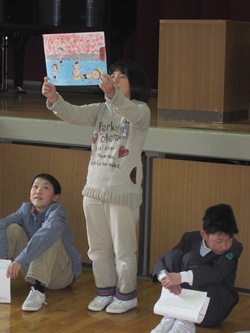 今月の集会では,1,2年生が学習の成果を発表しました。