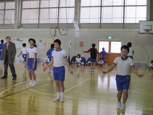 2月5日(火)2限と3限に全校で縄跳び大会をしました。