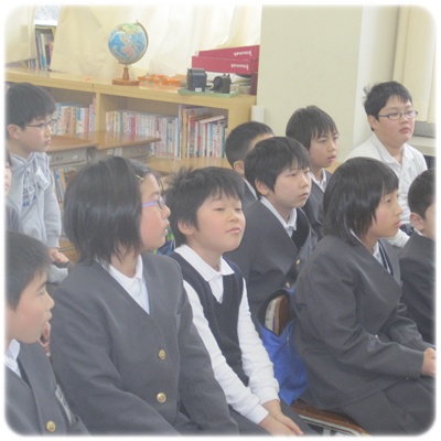 昼休みの時間に輪島市のお話グループ「ききみみずきん」の皆様に来ていただきました。低学年、中学年、高学年それぞれの学年に合ったお話で、みんな真剣な様子でお話を聞いていました。短い時間ではありましたが「ききみみずきん」の皆様ありがとうございました。